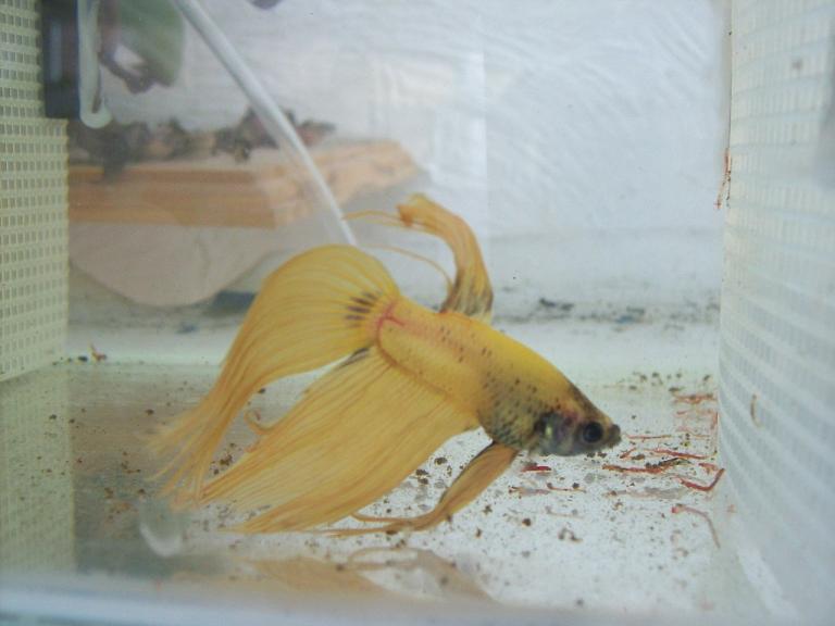 Red veiltail sitting under his nest...currently have loads of fry from him