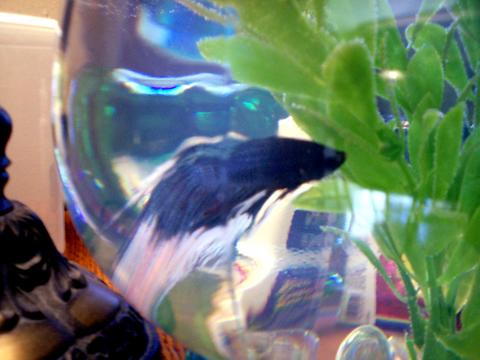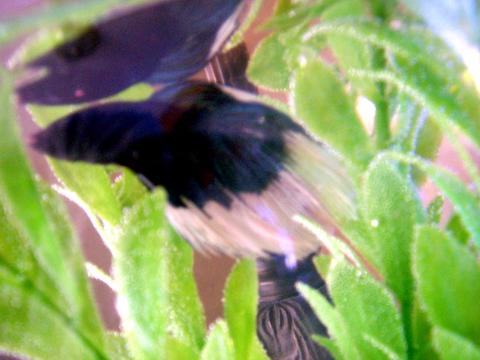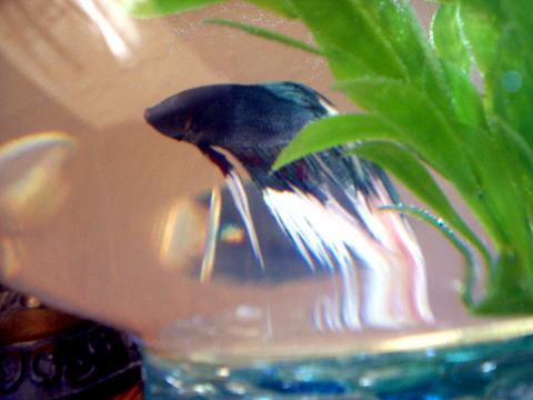 Soo yesterday I got my new betta. this is my 2nd one. Sorry the pics arent that good. I got him at petsmart..i fell in love with his tail! hes a lil scared of me right now. he will hide from me and wont eat in front of me but i am hoping he will get used to me soon. hes really big! i didnt notice how big he was till i got him home.