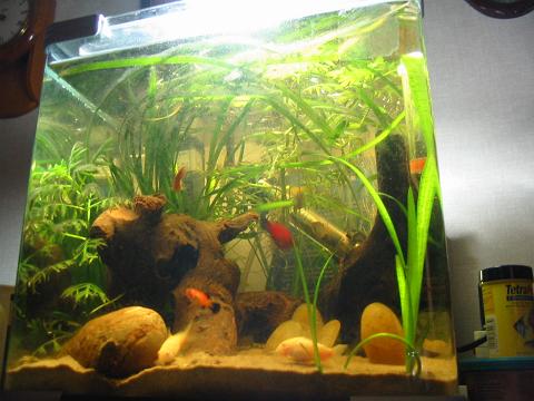He has had it 2 months. here it is. and another shot He has a couple of nice pieces of bogwood and also a few rapidly growing plants.
