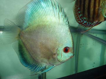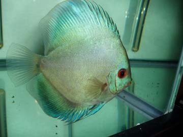 no, they dont get frightened, you will find that most expiereced people use barebottom to at least grow out discus and breed them... im growing them out. much better results this way. trust me, i know what im doing, i spend most my day reading about discus...lol
