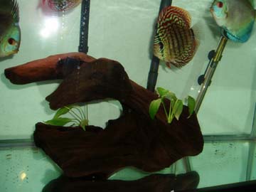 Thanks for all the nice words. Ive had the discus for a month and a half now. They all have grown about an inch in that amount of time. I just did that to the wood yesterday, i will add more plants to it if those ones live.
