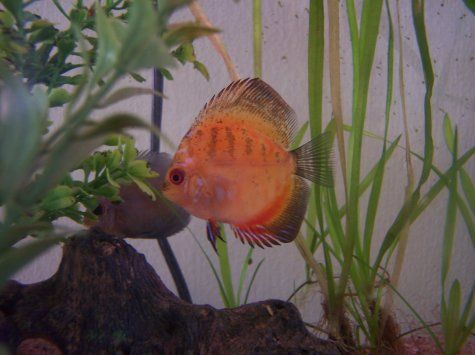 awesome discus!!!!!!! .... somehow im starting to like discus....guys its alll your fault, for having such tremendous good loking discuus...my mom is gonna kill me! ONLY if i get my friend to give me his 30 i'll do it...otherwise the bettas are my last purchase