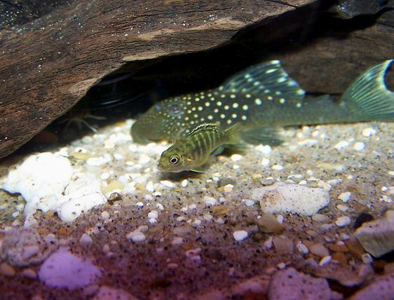 The cichlids are F1 Mozambique "neon blue" Peacocks.....absolutely gorgeous when mature.