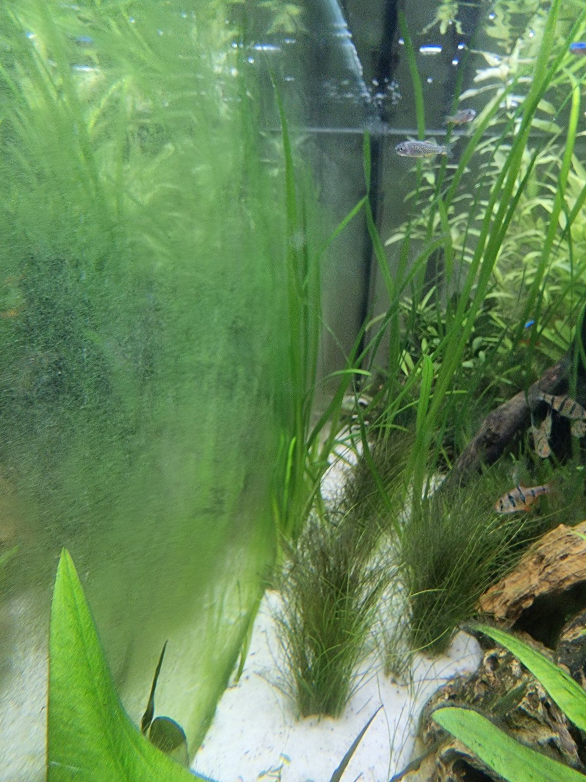It's another couple of weeks since I last updated you all. Since then I've added some more dwarf hair grass, some water sprite and a piece of rock with java moss attached. You can see that I'm suffering from a bit of brown algae and I've added 8 oto's to help clear that. I am now well stocked and only want to add one more fish, a pleco of some description. I'll be doing a lot of research first before deciding what to get.