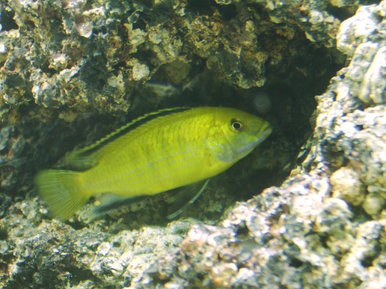 Hey all, I just got my very first malawi He/she is an electric yellow lab and was sold to me as a male but i just want to make sure before i buy 2 more...The fish is around 2" and here he/she is,