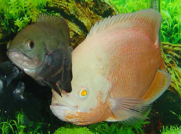 The albino is 12-14 inches and with another 6-8 inch (no good pic yet) and they share a 90 gal. The oscar in second photo isnt goin to stay long one of my sons friends didnt want it anymore so I took it and will be taking it to my lfs on saturday. Dont know why my sig isnt in the other posts?