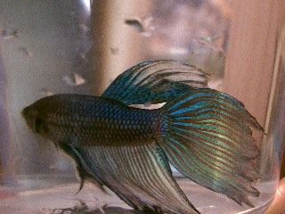 DAD hard to describe, I haven't seen another betta his color. That is why I wanted to breed him. He is a mutt, from a PETCO. As we all know sometimes the mutts are the most beautiful. Looks like he is a Veil/CT mix. I'm thinking his coloring is due to a wild mix as well.