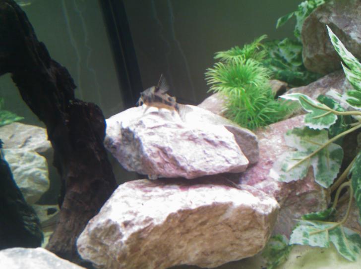 you may have seen some pictures of my aqua one regency tank (180l) decorated with a sand substrate and bog wood, silk plants and slate rock.