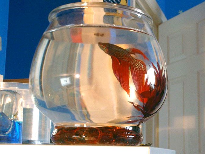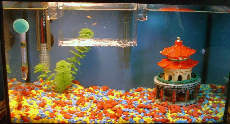 The 5.5 gallon was the tank I got for Christmas. There are 2 male platys in it right now because they were majorly stressing out the females in my other tank. I just painted the background blue and it worked out fairly nicely!!