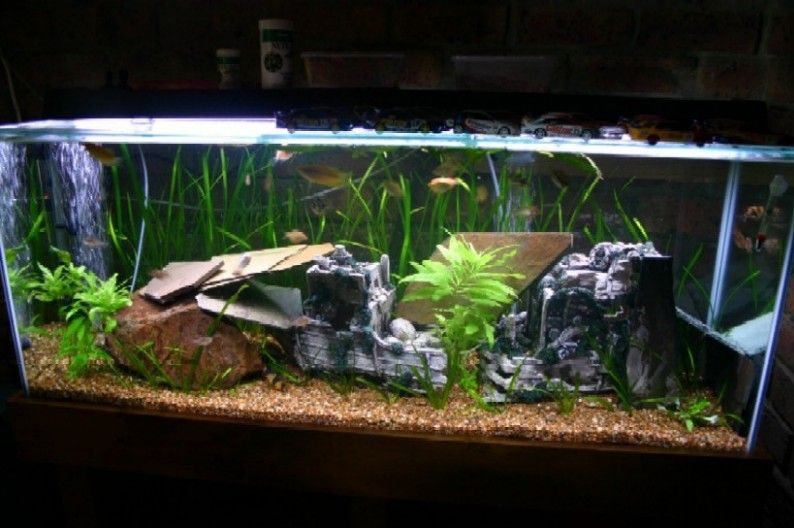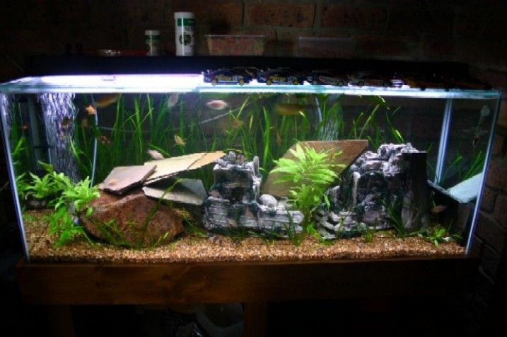 Well the discovering of y new fishroom started when my mum asked me to move my tank cause we were geting new carpet, i wasnt keen on the idea casue i didnt know where to put it at first until i discover the spare room in the back of the garge. I had to do a major clean of it and made some storage space at one end and the other for my fish room. There is enought room for probably four 4ft tanks on a rack system...so happy. I onhly have my 80 gallon community tank in there at the moment. We enough taking here is some pictures of it.