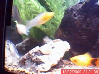 wow nice looking tank, im assumiong those are a fake plant? if so they are very nice looking. I see some that really look hidious like mine lol. what is the volume of that puppy?