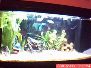 those pics make it look huge lol, not that it isn't big it's a great size! And i like the plants very nice. good luck with the real ones they can sometimes be tricky i had one tank that was nice and even overgrew and not to long later id died right off and so i had to salvage what i had left.