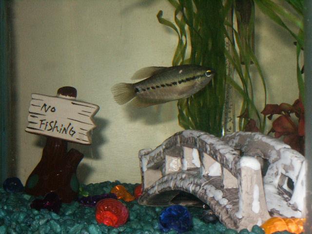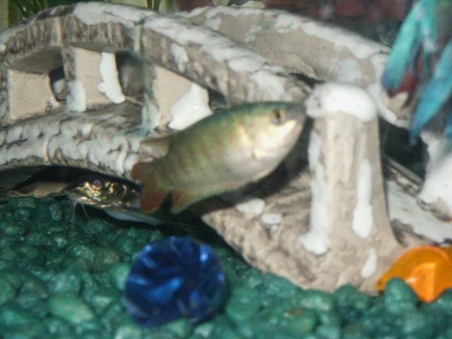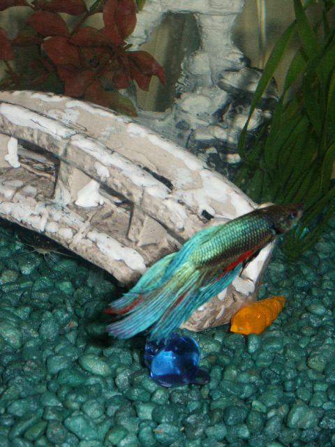 he gets along great with the other fish. people told me him and the gouramis werent good to keep together but they all mind eachothers busniess and noone attacks eachother. he only flared up once when my cory catfish swam up behind him and spooked him it was quite cute, besdies that nothing's happened tho