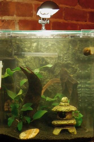 The only other addition I want to make to the tank is a glorious male betta... but I'll have to wait until I am positive that the tank is cycled. I would also like to add some carpeting plant to the foreground of the tank, but haven't found anything good yet. The aquascaping is NOT done yet.
