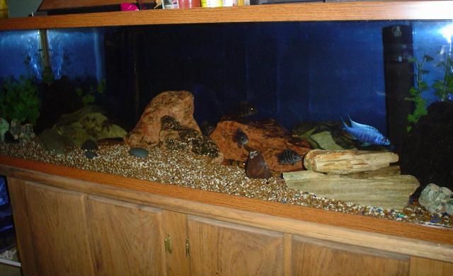 dogg~ here's the tank as of tonight but I'm hardly pleased with it. When I set it up it was a quicky job and really just a home for my fronts. The rockwork, the background,the lighting that causes a horrible brown algae, blech...it all needs to be changed.