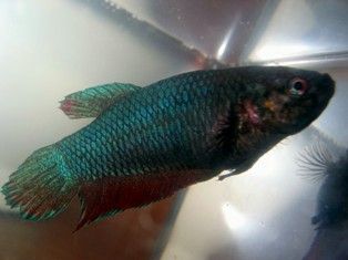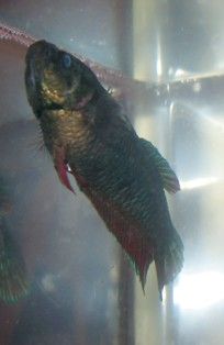 I posted a while back about a girl I found in the pet store who looked like she was sick and my grandma and I brought her home....well now a couple weeks later...shes doing better....not 100% but definetly much better then when i found her....So now that I have got a better look at her...I lover her...haha shes got quite a face...and I THINK not sure...but she might have the giant gene...since shes twice as big as my other male fish haha... I got some pictures of her too...