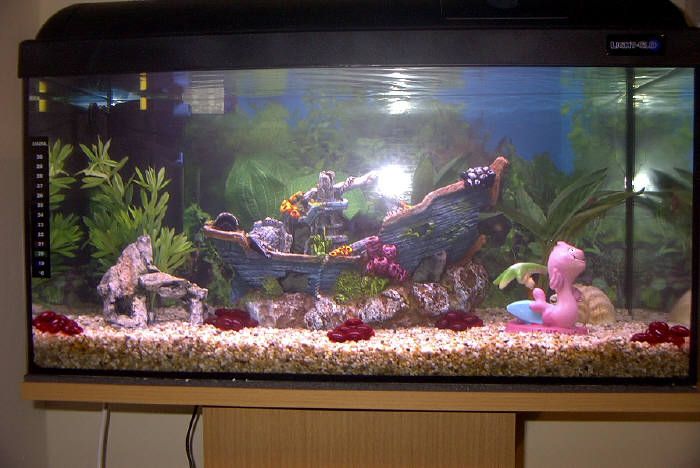 My dad gave me the boat from his 160L. I've put in some more plants too. The thing is the fish like the boat so much they spend more time in it than out swimming around. They seem to enjoy themselves though