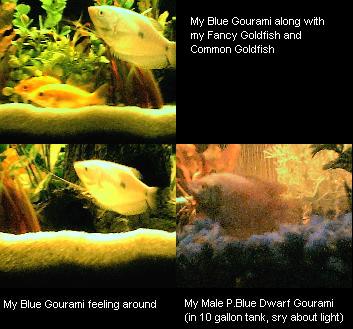 I have 2 Gourami's. 1 is a PowderBlue Dwarf and the other is a Blue. The Blue is in the 29 gallon and the Dwarf is in the 10 gallon. Thanks for looking