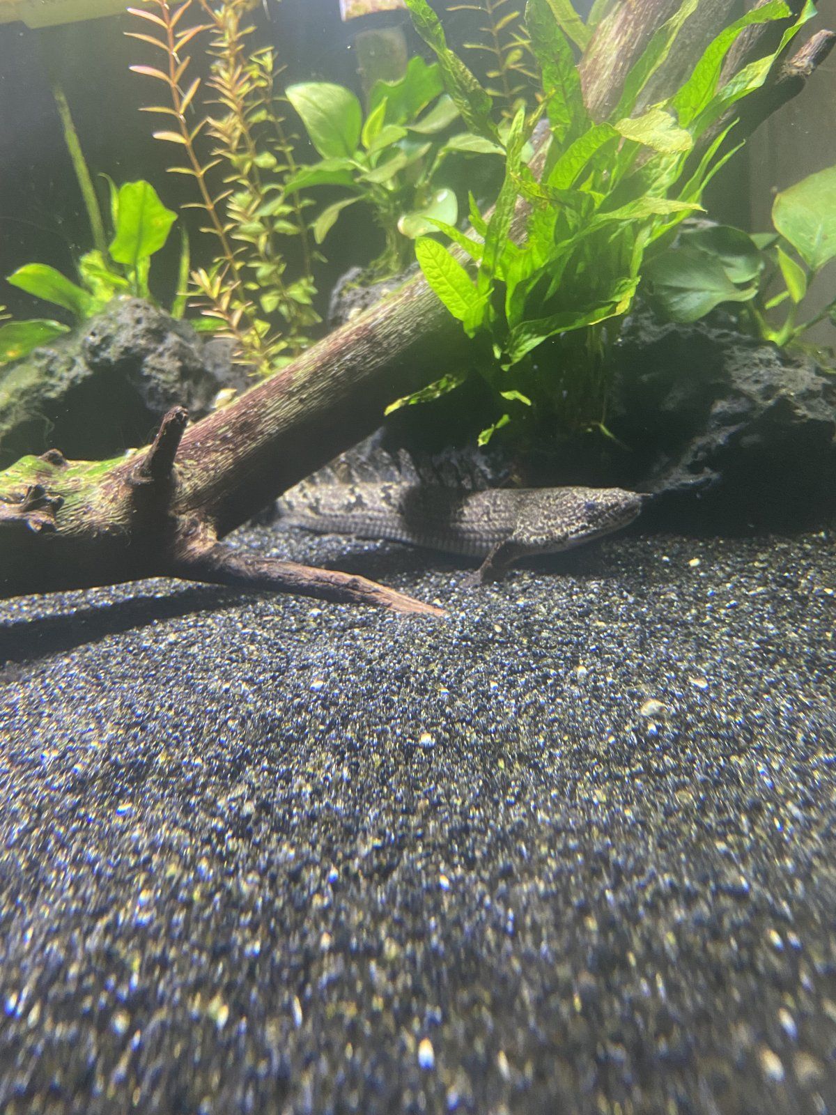 It houses 4 different species of Bichirs. Polypterus Delhezi, Senegalus, Palmas Palmas, and Mokelembembe. All of them are close to full grown. The largest is the Palmas Palmas, at 14”. I am thinking of adding a Red Wolf to the mix.