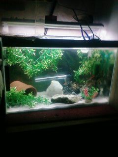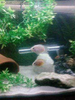 ive moved my jellybeans out of my divided 4ft tank and put them in my 2ft tank on there own ,the female has started to go orange and the male has started to dig under the ship .i wasnt lucky last time but maybe this time might have eggs.