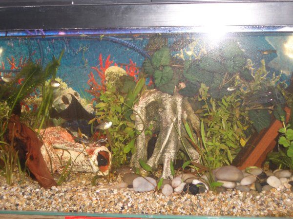 You can just see my Pleco's tail (Larry) at the back above the urn.