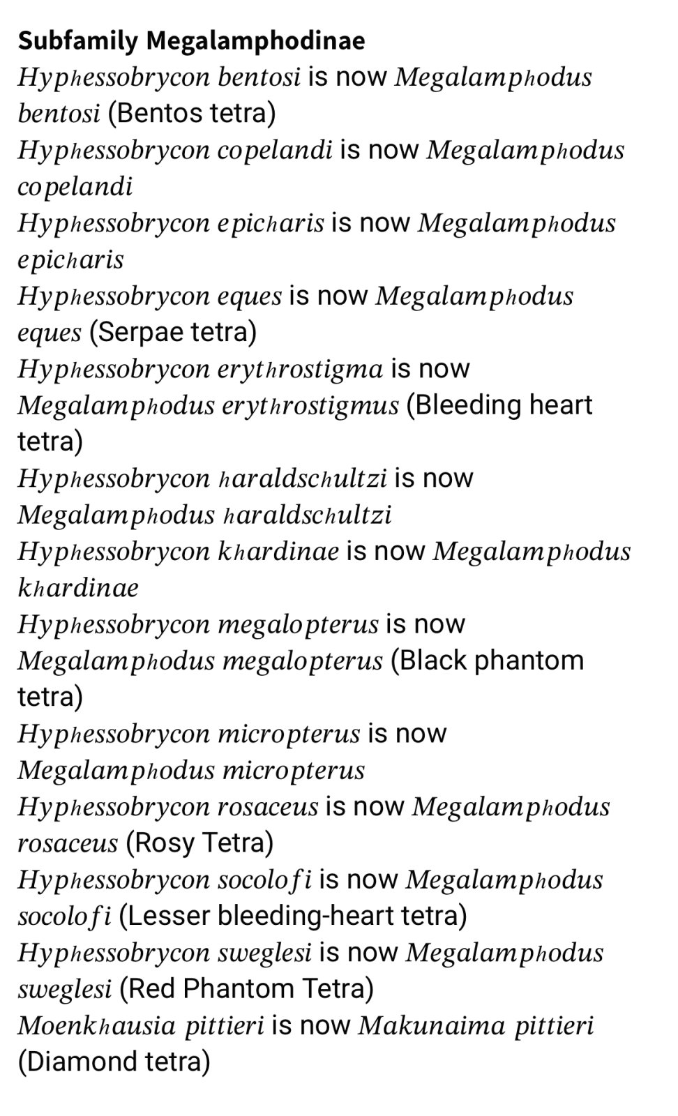 Corydoras were recently done, now I have learned that they've reworked several tetras now as well! The actual publication is pay walled as of right now, but some of the changes are posted in the article. https://aquainfo.org/the-end-of-the-characidae-family-as-we-know-it/ @fishorama since...www.fishforums.net