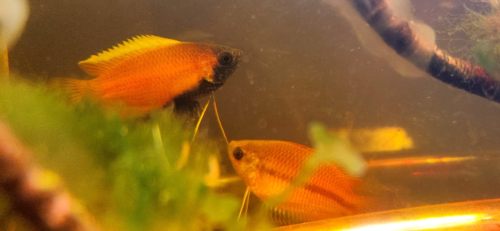 i love your gourami’s!! i’ve never had much luck with them unfortunately but i think they’re beautiful fish. it’s good to see you’re posting again!He's so handsome. He needs a name, as does his lady friend.