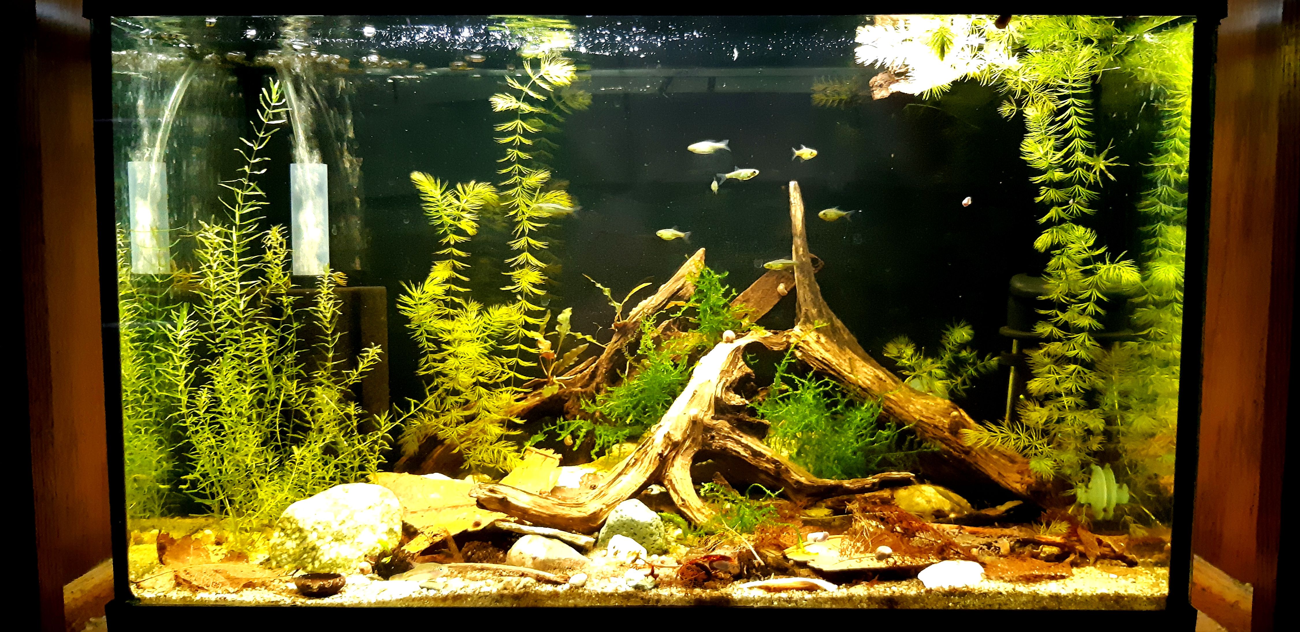 The fish(neons and glow-lights) were terrified of it - one died and I'm sure it was shock - I've been consumed with guilt, so I've turned it off. Got a one for a smaller tank than ours, too, because I just wanted a bit of movement - not a huge "woosh". I'm wondering whether I should put it in some sort of tube now thatI've seen yours.