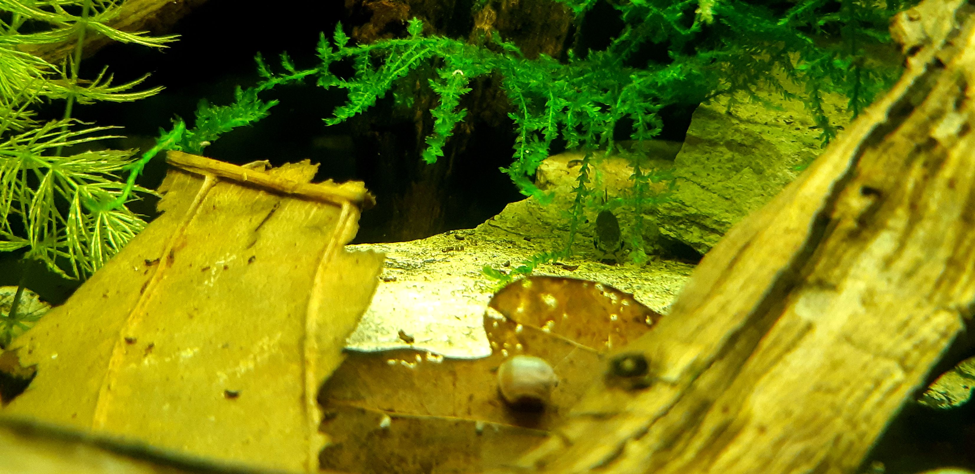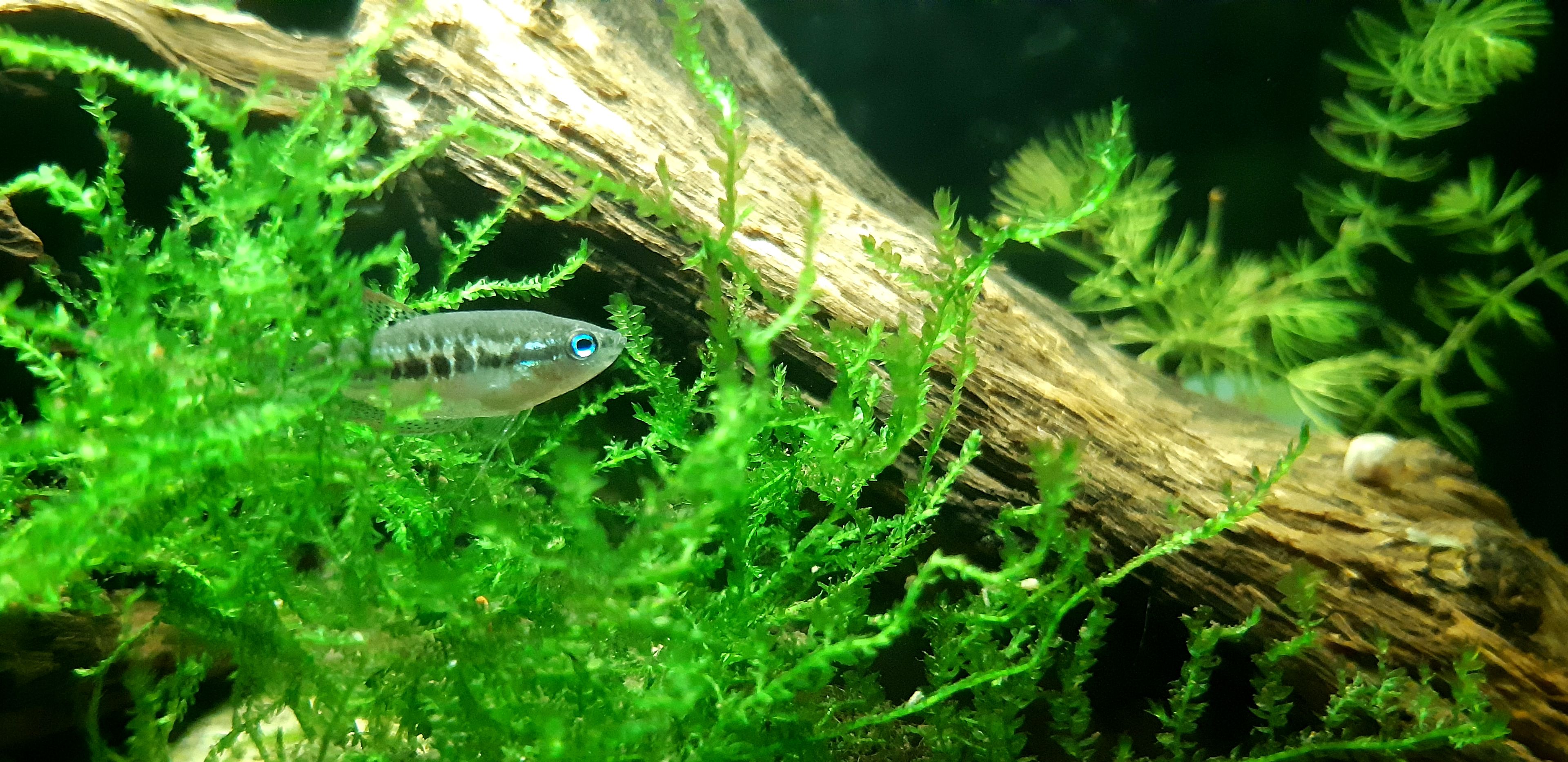 My 10g nano. Loving how the crypt sprouts are taking off on the driftwood. I attached it to the driftwood instead of planting them. Surprisingly theyre growing much faster than they were when planted!