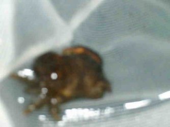 I slowly lifted the piece of live rock off the floor of the tank and quickly netted the crab. It didn't even move or try to escape. Instead it jus lay there all its legs and pincers curled up into like a ball!!!