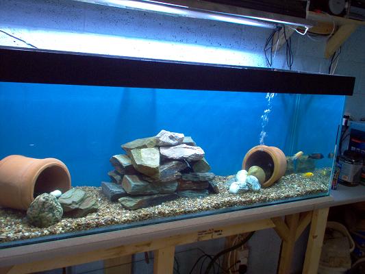 Also, i know there dosnt seem to be alot of filter media in there but there is quite a bit. I know you should over stock malawi tanks wich means extra filtration. We are in the process of building a rack made from plastic to put more filter pads into and sit in the centre of the sump.