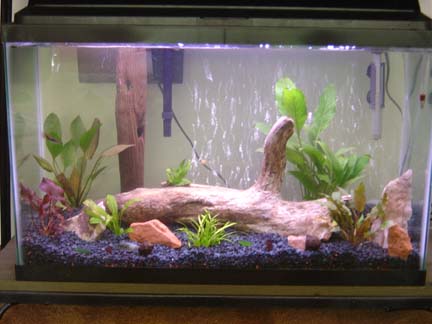 Here is a picture of my new 29 gallon tall. I think I have a great start on the aquascaping. I need more plants, but may have to take an trip to get some. Our lfs carries few and far between. HOpe you like what I've done so far. Remembering a year ago all I had was fake everthing in my tanks.