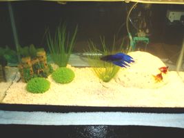 what r u feeding them.cause they take 2 different kinds of foods.dont they.instead of goldfish.add some snails,ghost shrimp,an african dwarf frog.they all will go nice with the betta fish