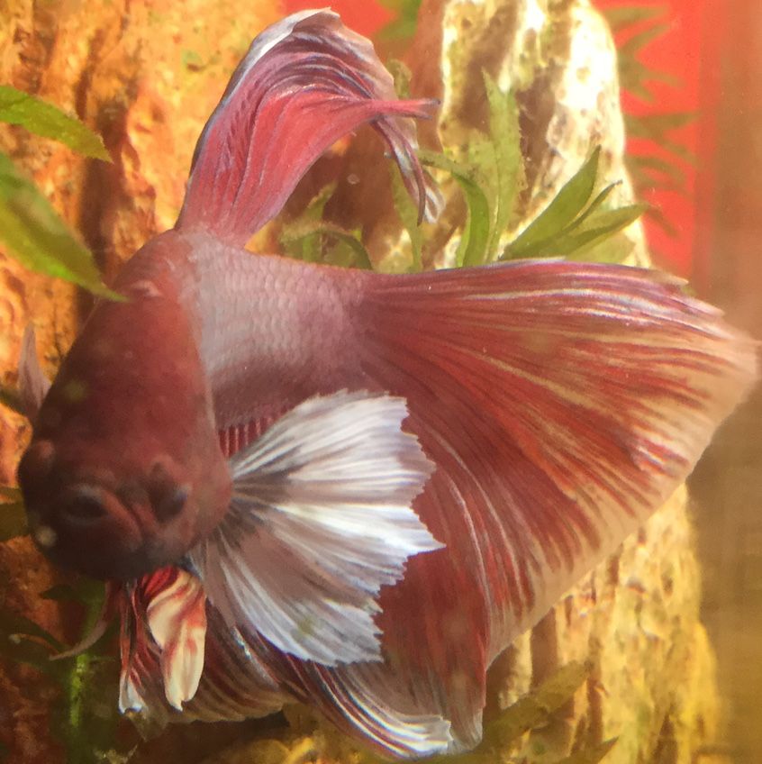 I purchased 3 new bettas for my fish room. Here’s some pics. One is a blue Koi, a black and red crown tail, and a pineapple dumbo ear.