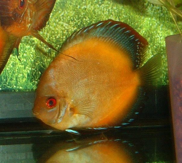 We went to our lfs at weekend and spoter this little fellow on sale for £29.95 for a 4 1/2" discus, i've nick named him shadow becarse of his black cap, its darker in life than it is on the pic.