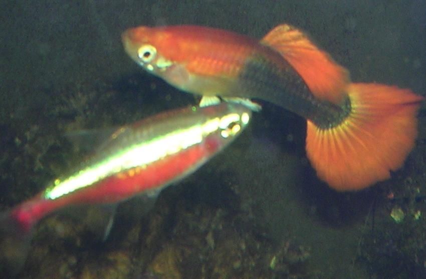 The neons? The angel will EAT the neons. Right now the nagel may be small, but not for long. And you have WAY too many in there. Does your tank not look like a pet shop tank? Do you not NOTICE your craming your fish into unaccepttable, horrible conditions?