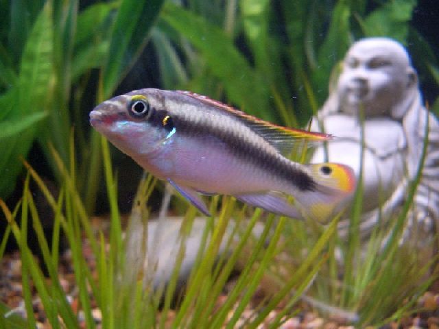 Thought I'd quickly post a couple of pics of my new pair of Kribensis. Im hoping to get them to settle in nicely into my community tank along with our Platies, Guppies, Bristlenoses and Swordies. They've been in for 24 hours now and are fitting in ok excepting a dust up with one guppy who must have got on their wrong side. They really are beautiful fish and they appear to be nicely paired as I've seen them 'shimmying' around in front of each other whilst popping in and out of rock caves I've prepared for them.