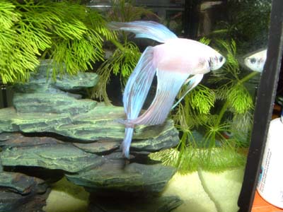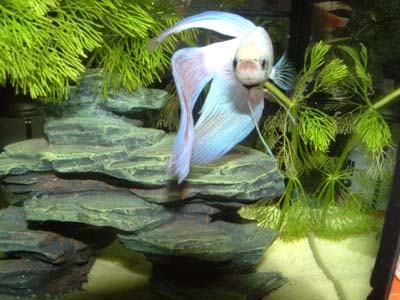Y Yenko Fish Addict Joined Feb 5, 2004 Messages 774 Reaction score 2 Location The Great White North Apr 4, 2004 #13 That's a very nice betta. I like his bluish fins (are those just the camera? You did say he was pure white) I think you should name him snowball (Then get a black one and name it snowball II ).