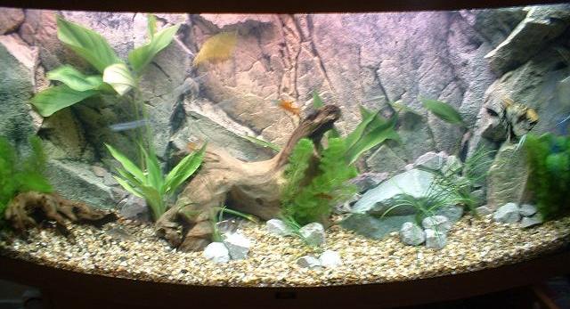 The tank is home to 2 angels, 5 black widow tetras, 2 Swordtails, 1 Red-Tail shark, 2 Pakistani Loach, 1 Common Plec, 6 Blue Tetras, 1 Honey Gourami and a Featherfin Catfish - sold to me as an upside-down cat.