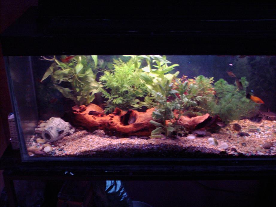 is that your 100gallon? because theres a platy in there and theres only platys in the 100gallon. if it is it must be a very long 100g looks about 20g maybe 30g to me. whats the measurements, i may be wrong, but just got abitpuzzled lol