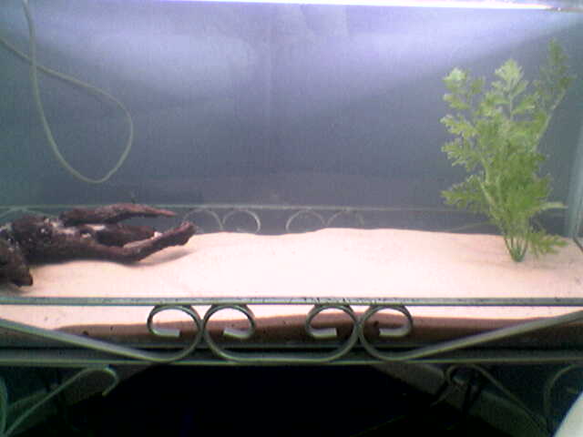 this is my new tank with sand , really impressed with it so far . The picture quality is not the best as photo has been taken with my mobile but the water is crystal clear and was as soon as i put the water in . I'm waiting on delivery of some more plants and a background for it , what do you think ?