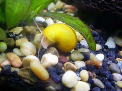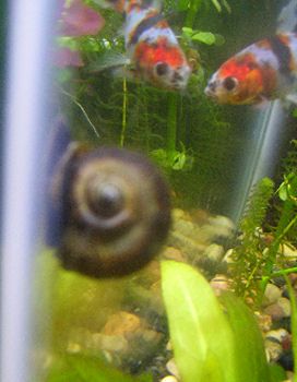 The second pic is of Gary, my first snail, with Red, my Shubunkin, in the background..