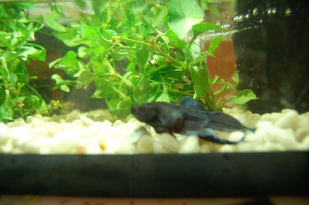 I was out closing on my new house and measuring windows over there, came back home and found my old Mr Woo had finally reached his end. He was the cheeriest little thing. I couldn't believe that any animal could be that ill and not give in to it. There he was so full of tumors he couldn't even swim sliding along the bottom of the tank in his few inches of water wanting to say hi and get fed.(he went on like that for 5 months!) Then his mouth got all funny in the last month or so and he could barely get the food in it....But he pop up like a frisky young thing and show off for me and try to get a big bite. He was eating up until this morning!! I had to shut off the filter as the current became too strong and he'd wash away in it. He was still happy even so.... Then he'd perch with his tail on the bottom and his mouth right up to the surface and I'd swear he was either dead or about to die. He'd see me flip right around and be his happy self. No little creature ever enjoyed life more no matter what...... I learned alot from him both about betta in general and also about keeping up one's positive outlook.. I'll sure miss him. He was one of a kind even tho just a common VT but isn't life just that way..? It maybe just takes the wise to see it.