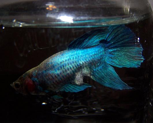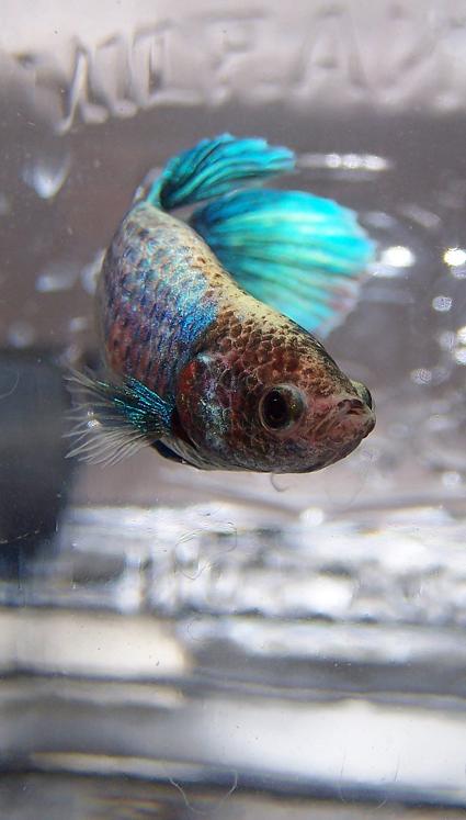 She thinks she is the tuffest betta in the world...actually so do I. She flares just about as big as a male and does the male fighting dance....blows her own bubble nests and has also taken a beating from my cat, Liza....a bloody mess