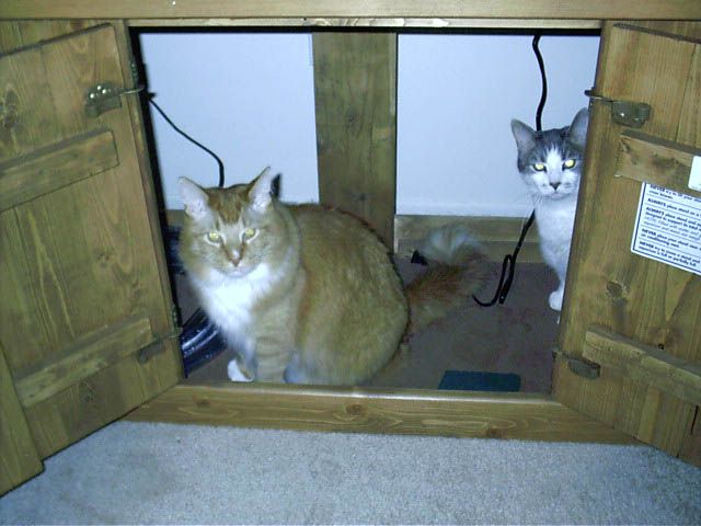 My cat, Fluffy, decides to inspect the inside of the Aquarium Stand before I can get the tank on. His approval is needed for just about everything.