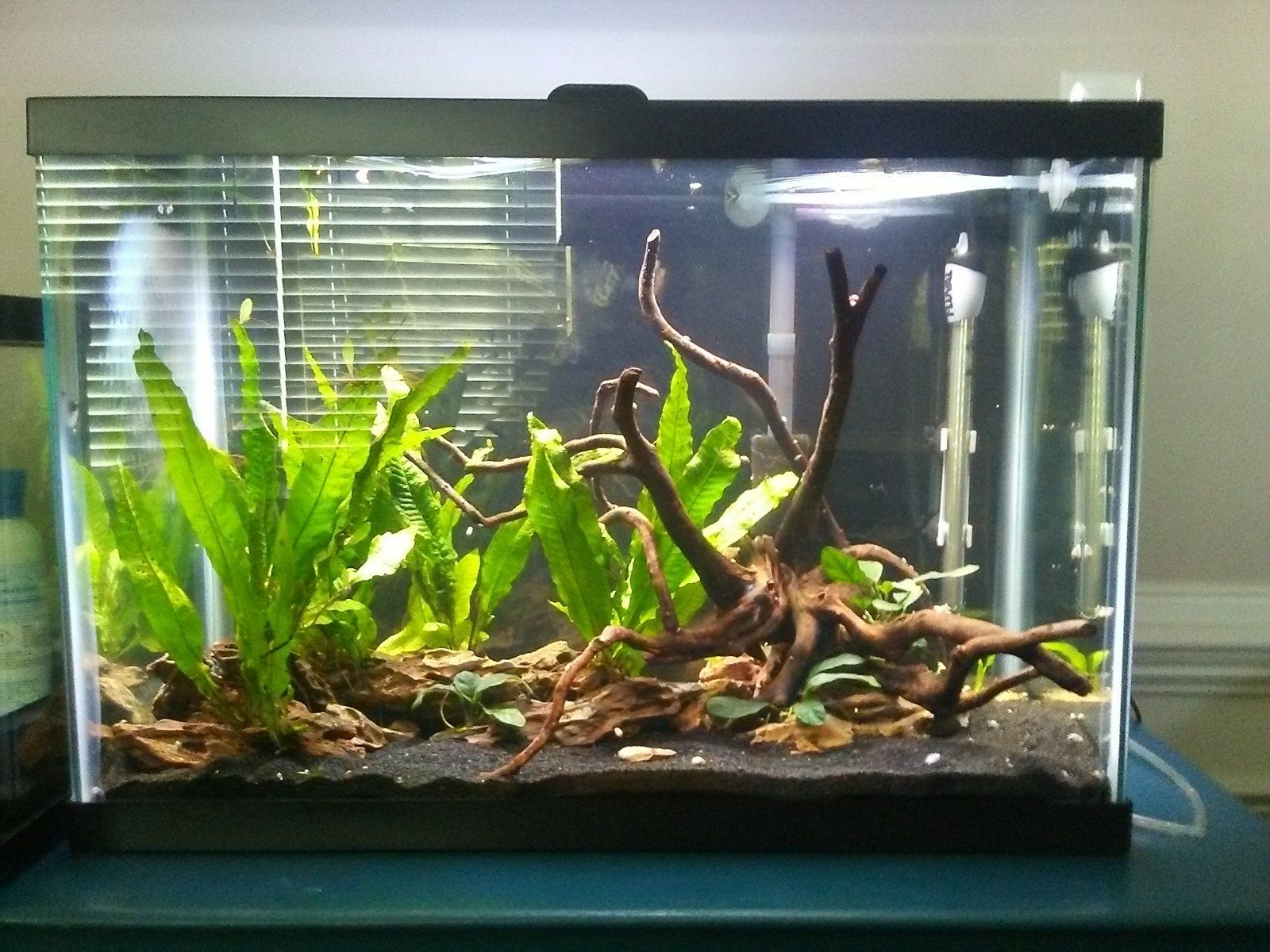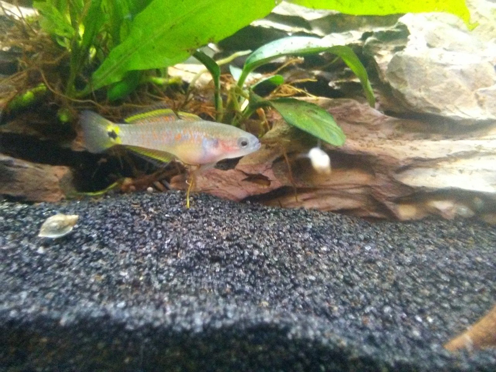 I know, when we came back from our vaca I saw this yellow leaf and I was like: "OH NO, IVE FAILED, MY PLANTS ARE DYING". But then aftee matching that plant up with a picture I took before the trip and noticed it wasnt there before... So I was like: "whew, my plants arent dying" lol. So now I know not to freak outNice...don't be alarmed that it is yellow, new anubia leaves start out that way, it will green-up over time.