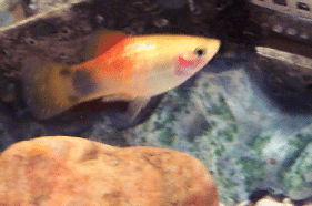 Decided to post pictures of my platies, so here you all are. Some of them are blurry, sorry. Here's my male red wag platy. I thought he was a female at first but he turned out to be male.