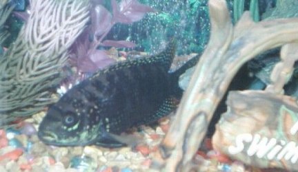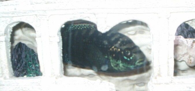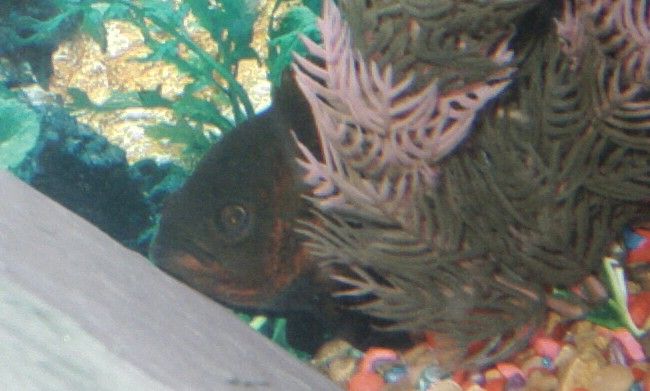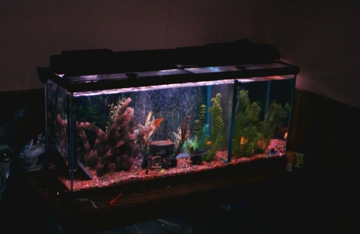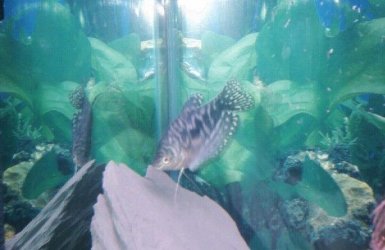 Here's the tank every1 was asking for. It's only going to be like this for a couple of weeks to a month. We'll see. The left side is the cichlid side and the right side is our community side. If you look real clos you can see our baby red zebra that escaped to the cichlid side.