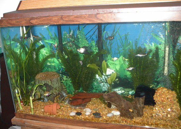 the wattage not sure it is a new hood and the factory bulb that came with it. I have to leave the lights on for about 16 hours to get enough light i am either going to do a DIY and redo the lighting hood or buy a plant gro bulb.Alia said:Looks great, Rolln. I could see where the stump would be too open for the kribs --they like a cave that is easy to defend. Do they seem any closer to setting up housekeeping these days?