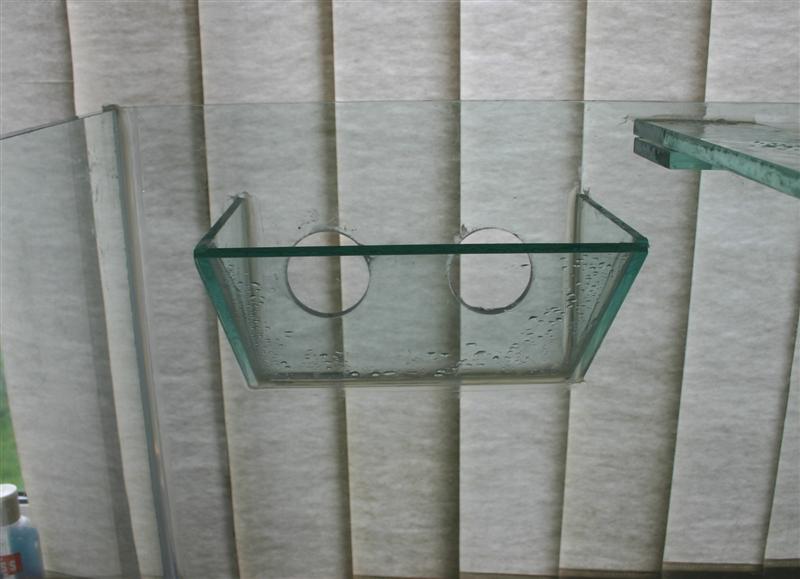pic 10 the 2x return pumps (3500l.ph each)come up from the sump via 25mm pipes, to each corner where the enter the tank,and go straight down and along the base of the tank, to form two spraybars,which will stop any build up behind the liverock,